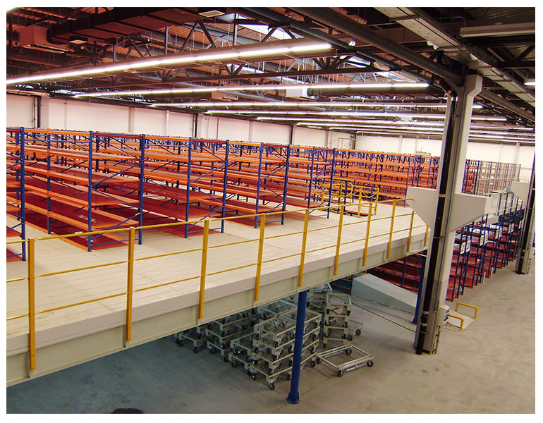 閣樓式貨架面板有平板、花紋鋼板、沖孔鋼板等品種以適應(yīng)防火、通風(fēng)、光照等等不同使用要求。貨物上下樓層可選擇叉車、液壓升降臺(tái)、貨梯等方式;貨物同層運(yùn)輸通常使用小型手推車完成。